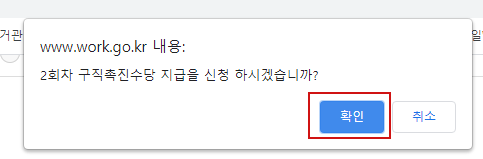 X회차 구직촉진수당 지급을 신청 하시겠습니까? 라고 메시지가 나오며