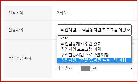 별도의 프로그램이 없이 구직활동만 하는 경우는 마지막의 취업지원, 구직활동 지원프로그램이행을 선택하면 됩니다.