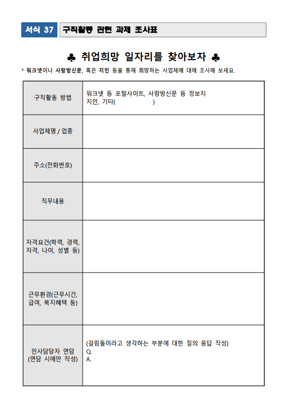 국민취업지원제도-구직활동관련과제조사표-서식37