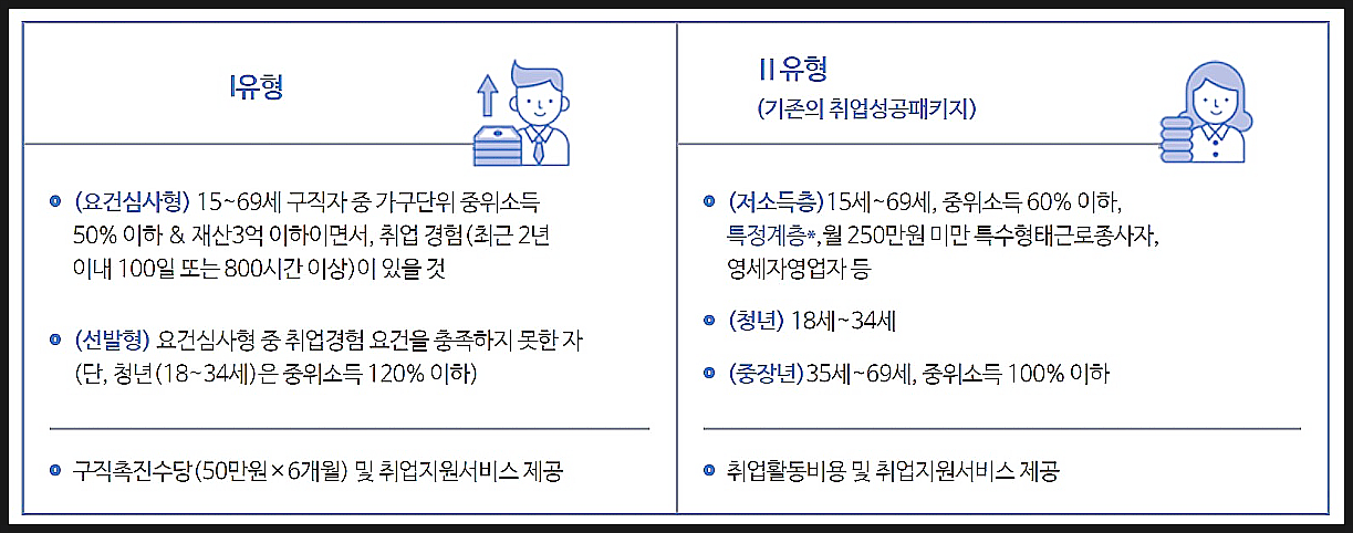 국민취업지원제도는 1유형과 2유형으로 나뉘어 지원됩니다.
