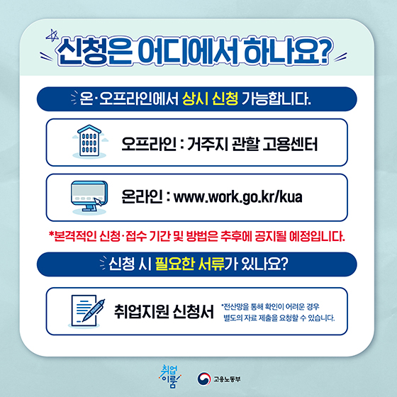 신청안내 전국 고용센터- 고용노동부 콜센터(☎ 1350)