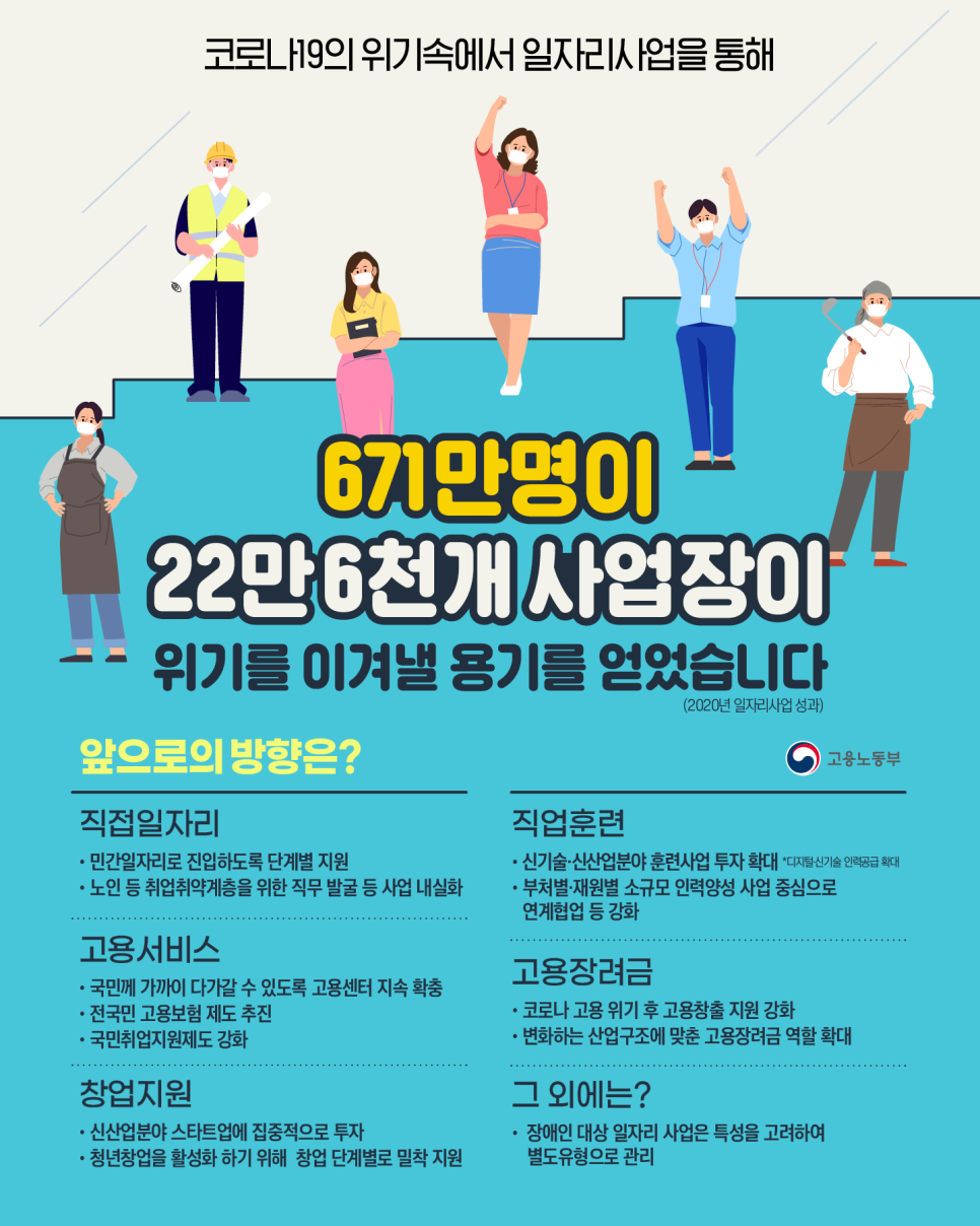 고용노동부(장관 안경덕)는 2020년 시행된 일자리사업의 성과를 평가하고,