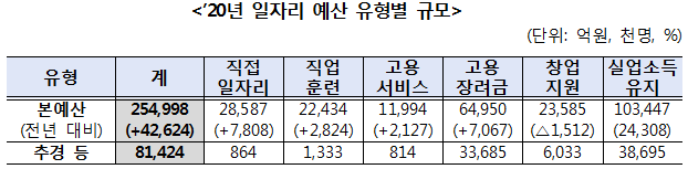 · `20년, 이와 별도로 3·4차 추경으로 공공·청년일자리 60.4만개(3.4조원) 추진