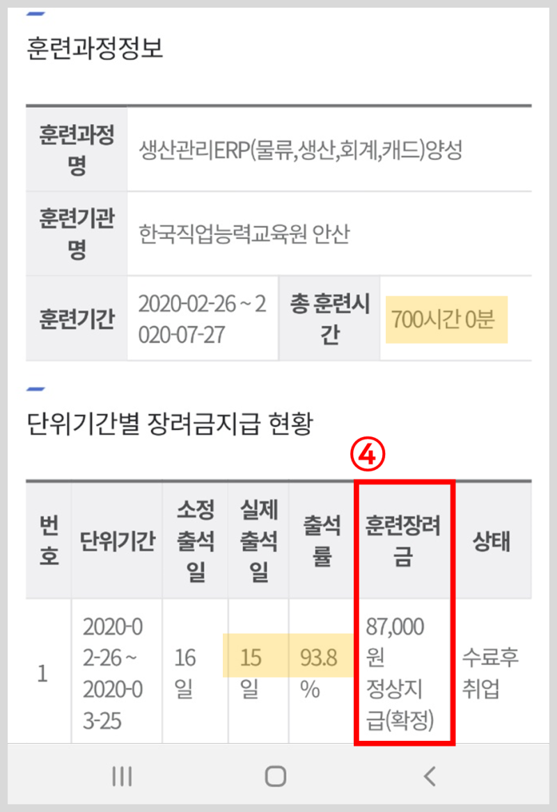훈련장려금 지급액과 지급대상을 알아보았는데, 그렇다면, 이번 단위기간에는 얼마가 들어오는지 확인해볼게요.